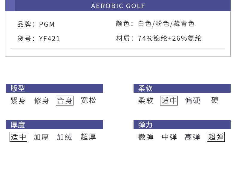 - Với chất liệu 74% Nylon + 26% Spandex, thấm mồ hôi, ấm áp giúp người chơi có được trạng thái tốt nhất mỗi khi chơi Golf.