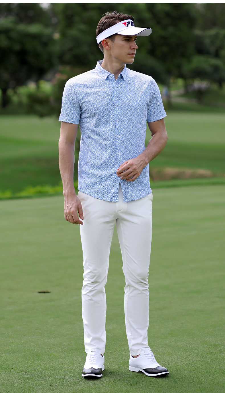 - Sản phẩm YF319 là áo sơ mi golf ngắn tay cho nam mềm mại, có độ dày vừa phải và co giãn đàn hồi cao giúp golfer thoáng mát hơn trong thời tiết mùa hè.