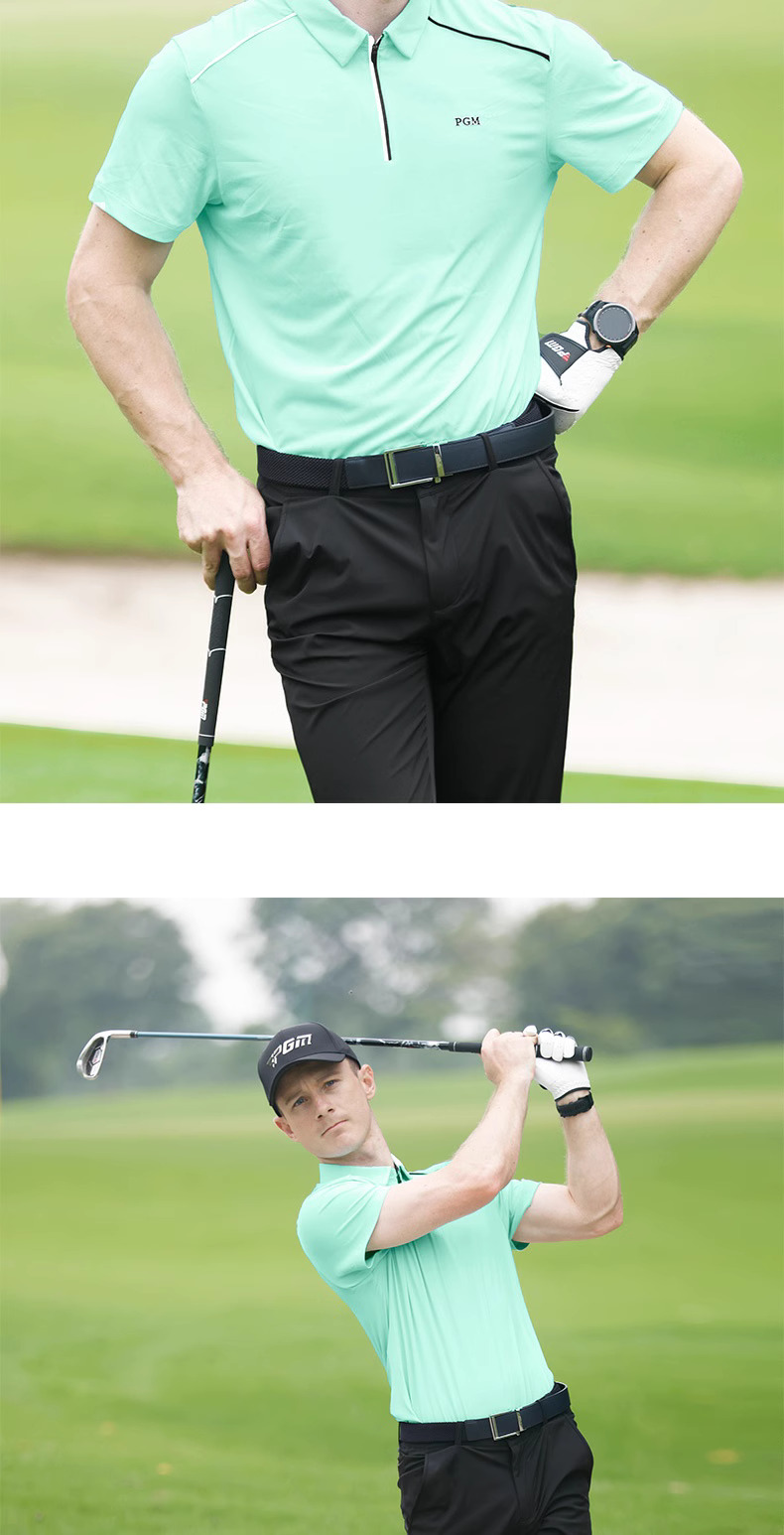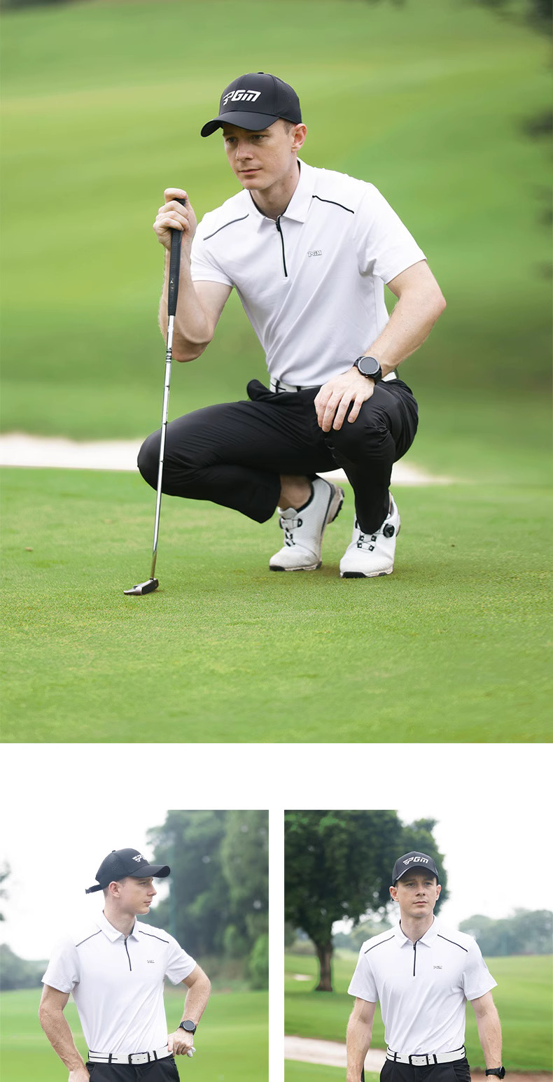 - Áo golf với chất vải mềm mại - mát lạnh giúp golfer có trạng thái thư giãn và thoải mái nhất trên sân. Cổ áo polo có zipper kéo thời trang.