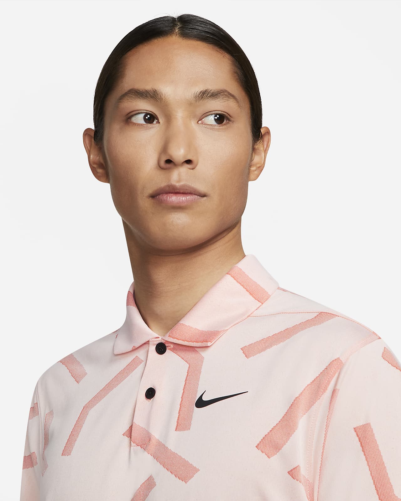 - Dòng áo golf Dri-Fit cho Nam của Nike với họa tiết trẻ trung và khỏe khoắn. Loại vải thoáng khí có trọng lượng nhẹ và mang lại sự thoải mái khi di chuyển. Cổ áo polo điển hình với một hàng cúc và ba cúc tạo cảm giác cổ điển.