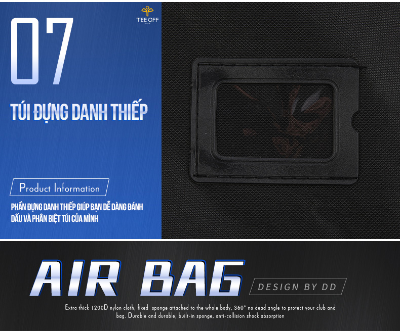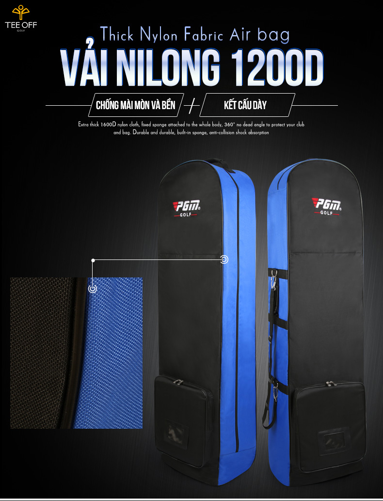 - Vải Nylon độ bền cao, chống thấm nước cao cấp, chống bụi bẩn, chống xước cho túi Golf.