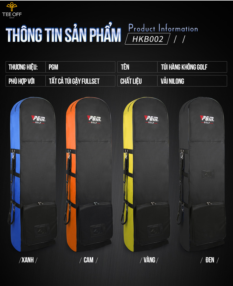- HKB002 là mẫu túi hàng không chuyên dụng dùng để đựng gậy khi đi máy bay, là vật dụng rất cần thiết đối với người chơi Golf khi phải thường xuyên di chuyển trên những quãng đường xa.