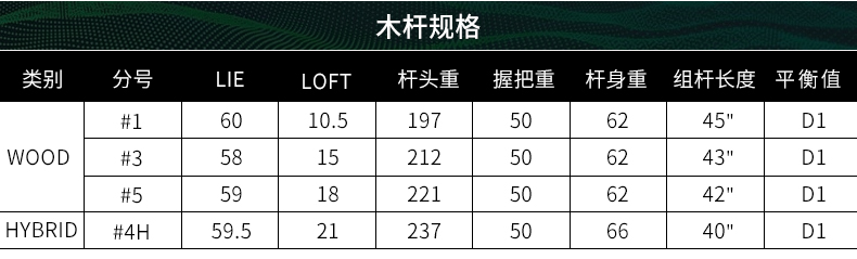 | Chi tiết | Fullset : 12 Gậy (4) Wood Set: Driver #1, Wood #3 #5, Hybrid (5) Iron Set: #5 - #9 (2) Wedge: #S, #P (1) Putter |