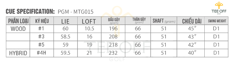 Bộ gậy Golf PGM MTG015 với thiết kế trang nhã, hài hòa có những thông số quen thuộc và thông dụng như: cán làm bằng chất liệu Graphite, Flex R, có độ nhẹ rất phù hợp với Golfer mới chơi nhưng vẫn giữ được sự chắc chắn cần thiết trong mỗi cú đánh.