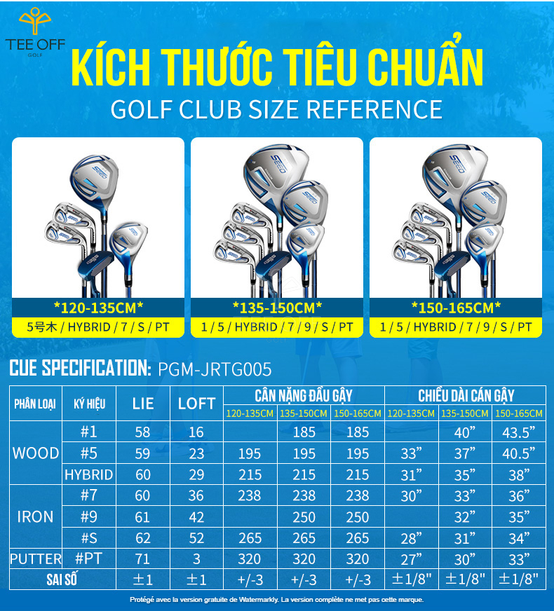 - Tên sản phẩm: BỘ GẬY GOLF TRẺ EM (BÉ GÁI) - PGM SEED JUNIOR GOLF CLUB SET - JRTG005