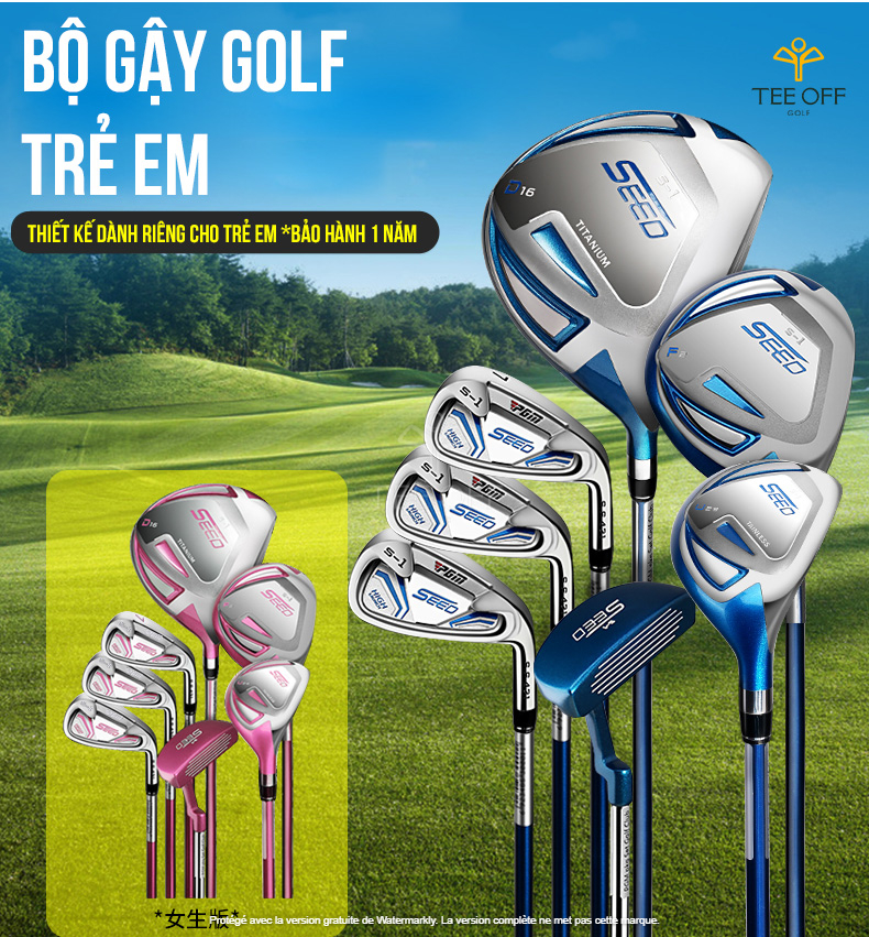 Được thiết kế chuyên biệt về độ dài, góc Loft... và màu sắc phù hợp với từng lứa tuổi. Với chất liệu cán gậy bằng Graphite nhẹ và bền giúp cho con bạn có sự khởi đầu với môn Golf thuận lợi nhất, là nền tảng cho sự phát triển của các tay Golf chuyên nghiệp trong tương lai.
