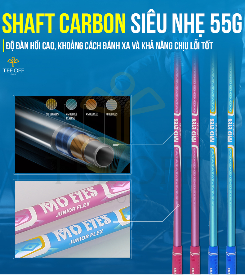 - Mẫu mã đa dạng, kiểu dáng tinh tế, trục carbon siêu nhẹ, đầu gậy làm bằng thép Vonfram hoàn toàn được đánh bóng phù hợp và an toàn với thể chất trẻ em.