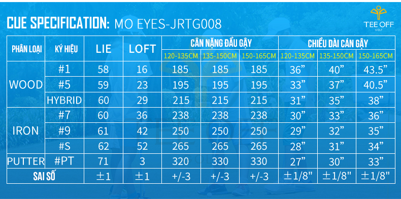 - Được thiết kế chuyên biệt về độ dài, góc Loft... và màu sắc phù hợp với từng lứa tuổi.
