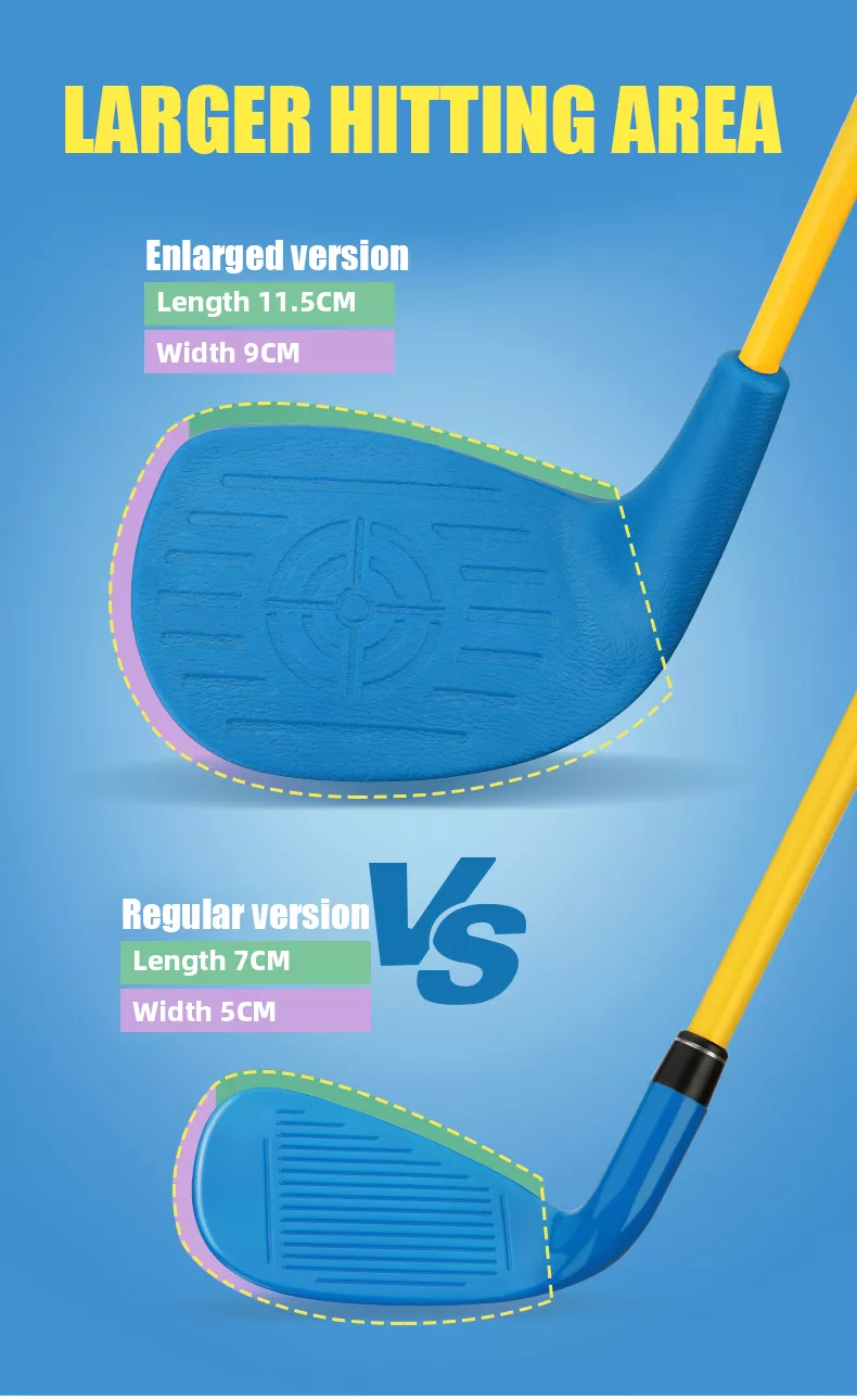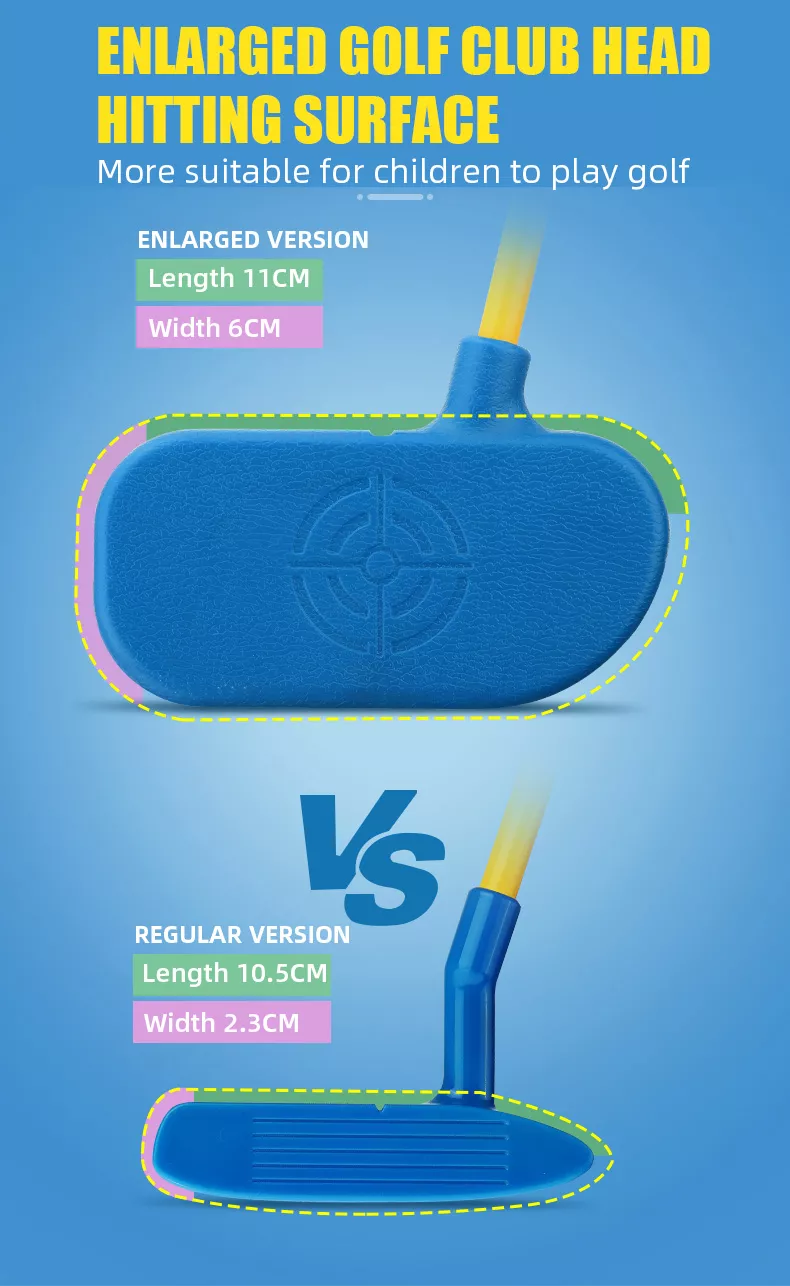 - Độ dài gậy và trọng lượng nhẹ, phù hợp với thể lực của trẻ nhỏ, giúp các bé thoải mái phát huy khả năng trong bộ môn thể thao Golf. An toàn cho trẻ mới biết đi và có thể dùng để chơi bóng thật, đem lại cảm giác gần giống gậy có đầu kim loại. - Giúp bé học chơi golf thành thạo từ những năm tháng đầu đời, phát triển trí tuệ.