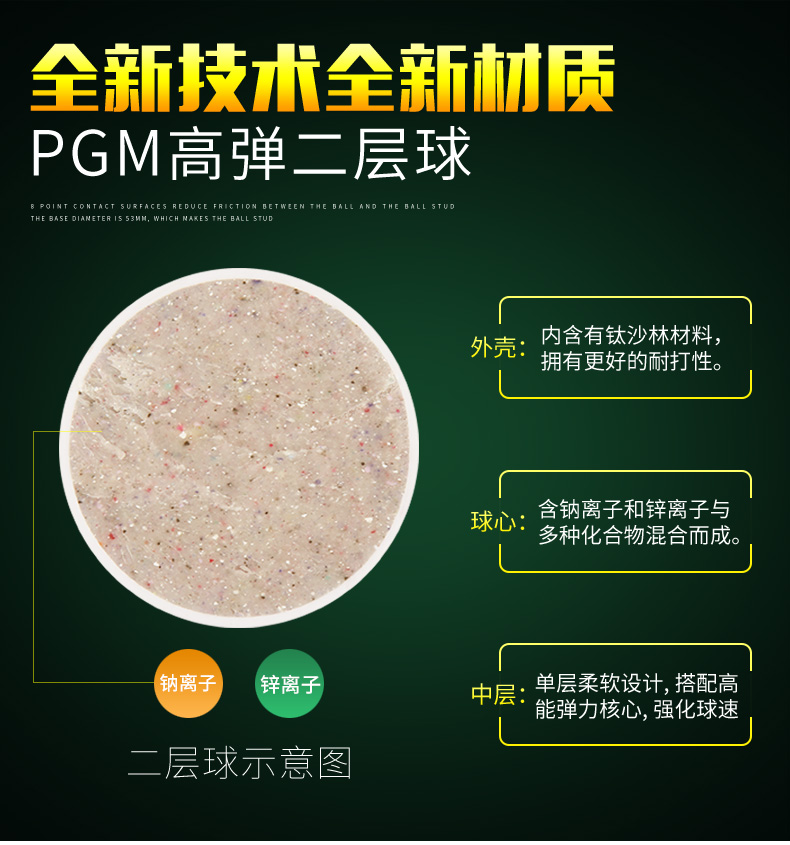 - Bóng PGM tiêu chuẩn 2 lớp, trung bình mỗi cú đánh có thể được chơi ở khoảng cách 20 yard, đặc biệt là khi sử dụng những cú đánh ngắn, có hiệu suất tốt hơn trên Green.