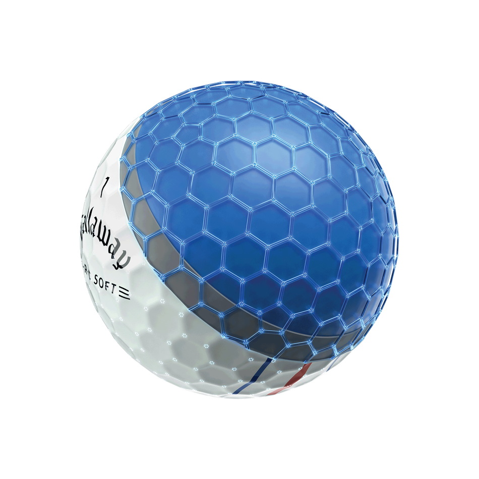 - Tiếp đến tại lõi của Callaway E.R.C Soft Triple Track có đến 4 lớp. Thiết kế lõi kép Chrome Soft X với sự bổ sung một hạt nano cực mạnh mẽ khiến phần lõi bên trong to và mềm mại hơn. Đồng thời tốc độ bóng cũng sẽ nhanh hơn, lõi ngoài cứng hơn mà không gặp vấn đề về độ bền.
