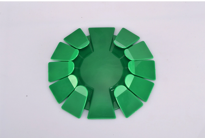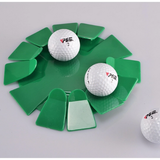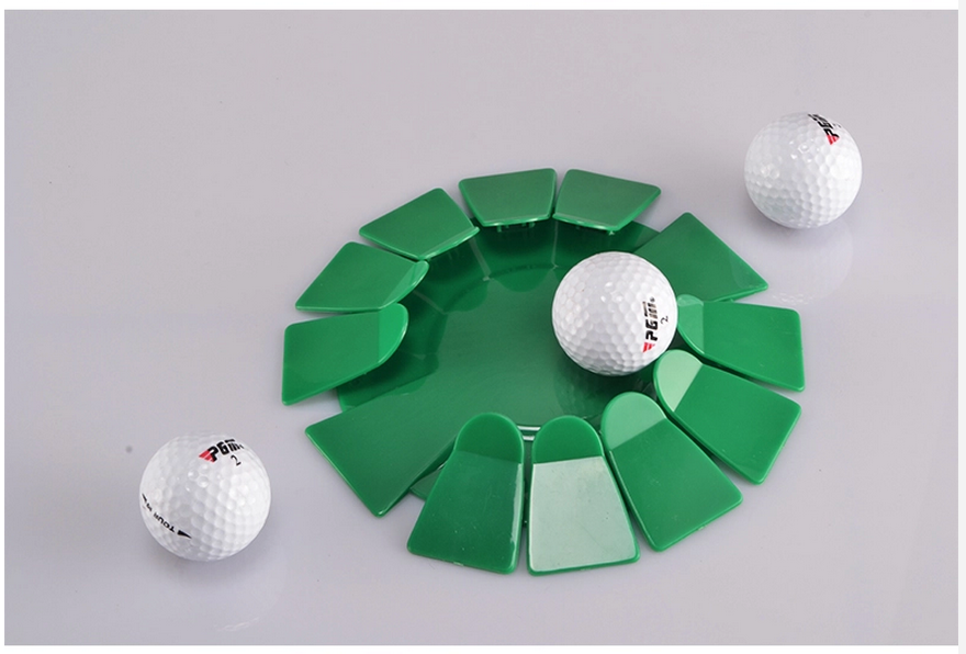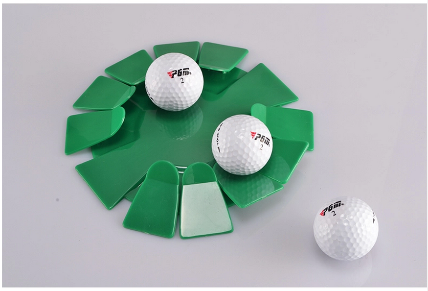 - Thiết kế như một bông hoa, có nhiều cánh nhỏ chụm lại về phía tâm đĩa, giúp giữ được bóng trong đĩa khi người chơi golf tập luyện cú đánh bóng trên thảm tập.
