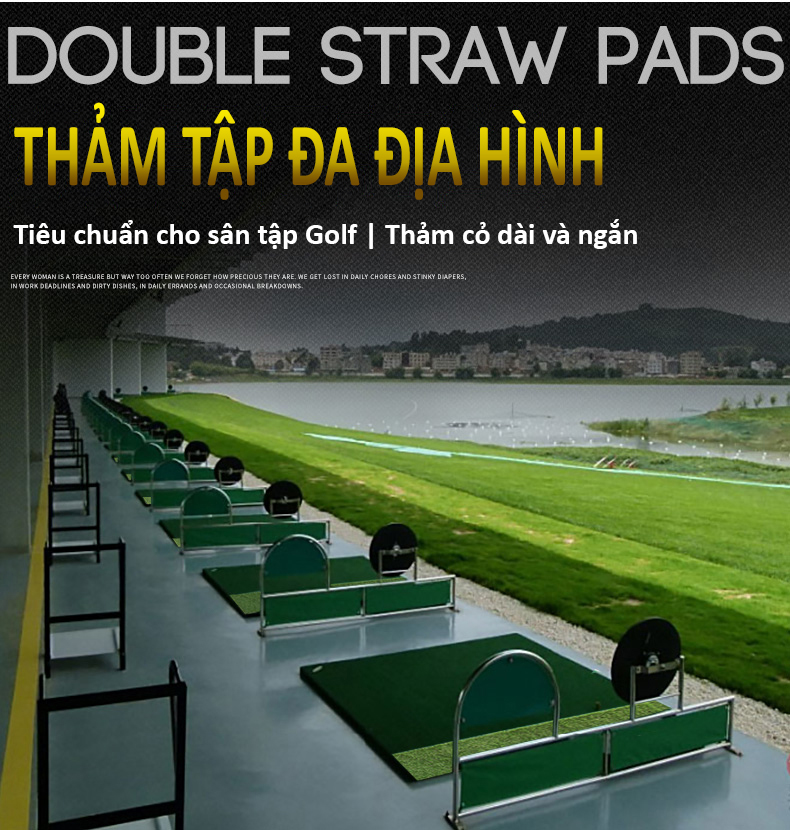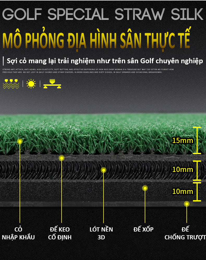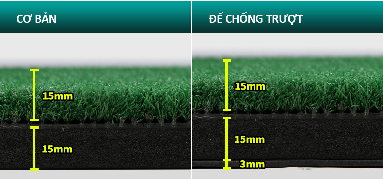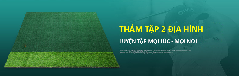 - Thảm có hai lớp cỏ ngắn dài, giúp người chơi Golf có thể thực hành đa dạng các loại bài tập, nâng cao khả năng.