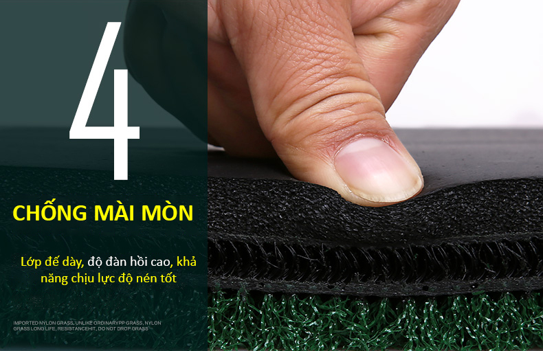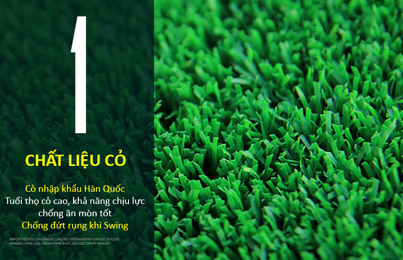 - Bề mặt đế cao su với nhiều lớp kết cấu, lớp thảm cỏ mềm mại giúp thảm có độ đàn hồi rất cao tạo cho người chơi có vị trí đứng thoải mái, êm ái nhất khi thực hành cú Swing trên mặt thảm.
