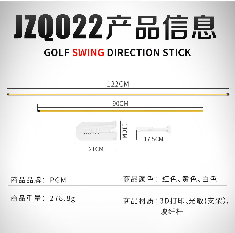 - Sản phẩm JZQ022 gồm 2 bộ phận, trụ nhựa căn chỉnh và que định hướng giúp chỉnh swing cho golfer. Trụ nhựa có thể điều chỉnh được góc dựa theo chiều dài gậy quý khách đang sử dụng.