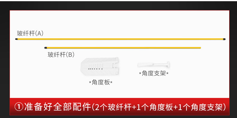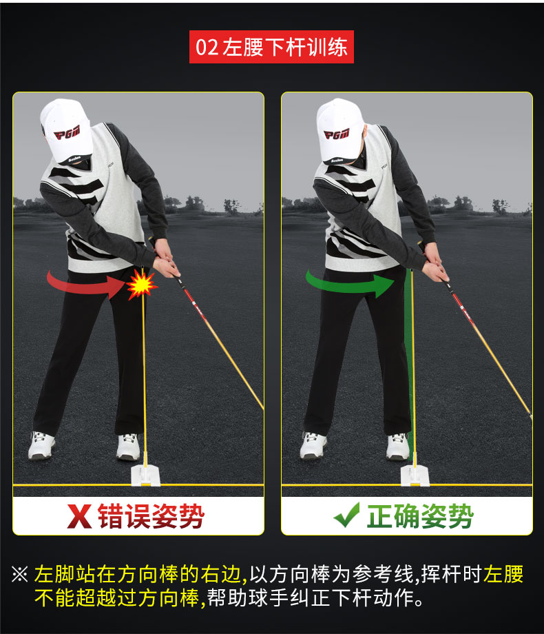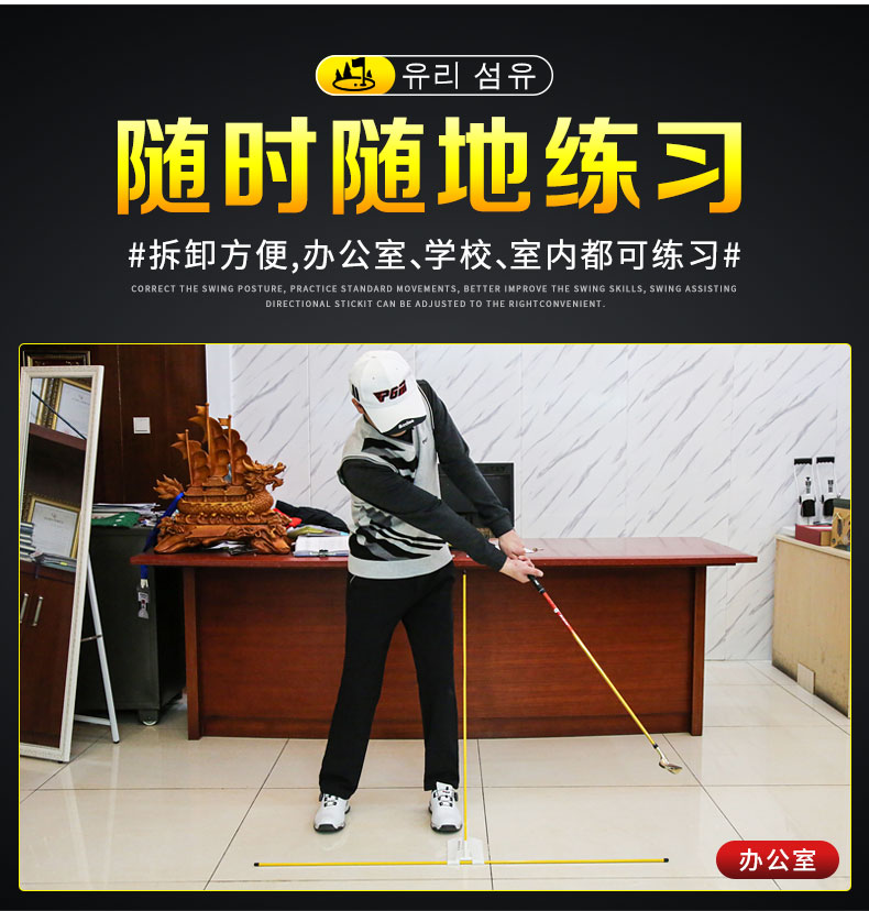 - Que định hướng tập Golf làm bằng sợi thủy tinh (tính linh hoạt mạnh mẽ), đầu que tập bọc lớp cao su đàn hồi siêu tốt. Trụ nhựa làm bằng nhựa cao cấp có thể điều chỉnh góc từ 40 - 70 độ