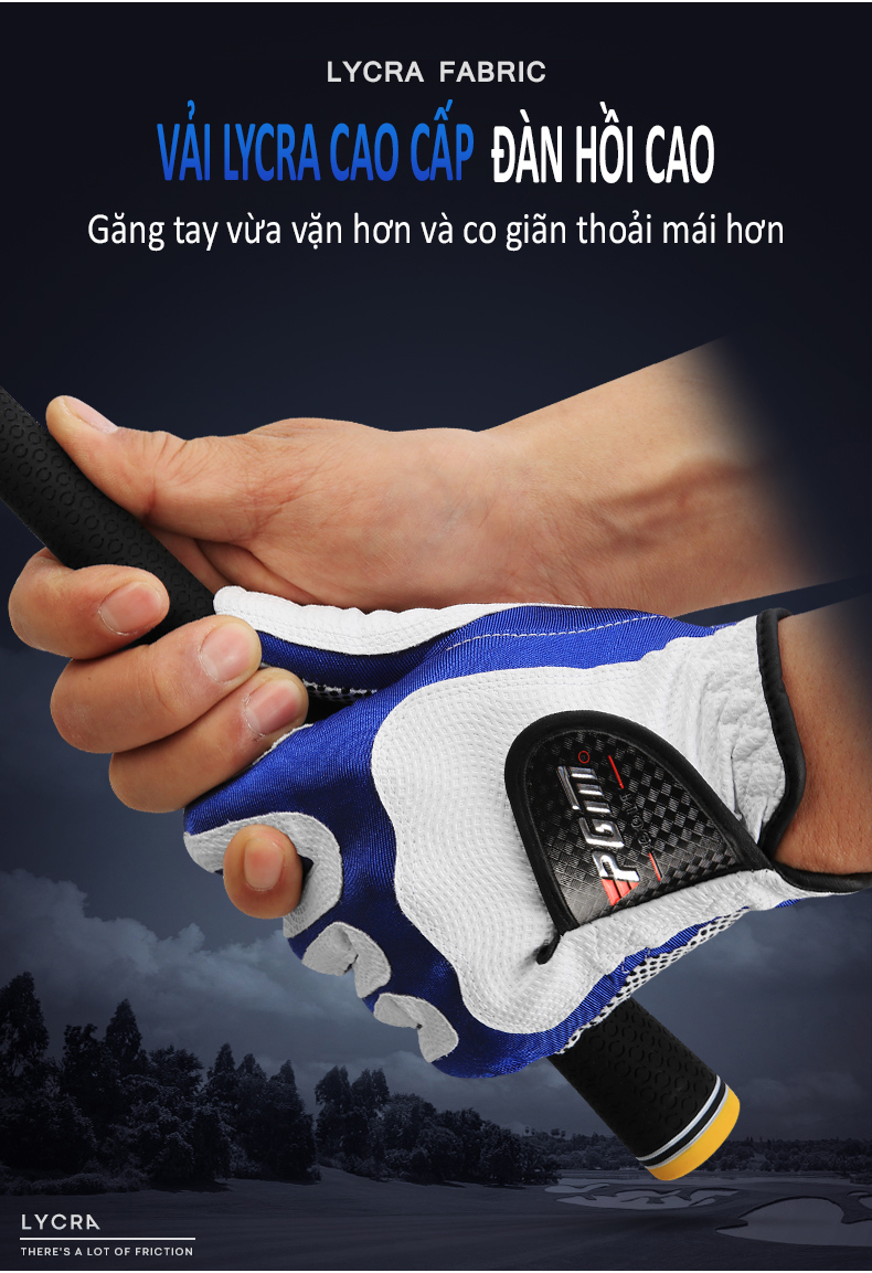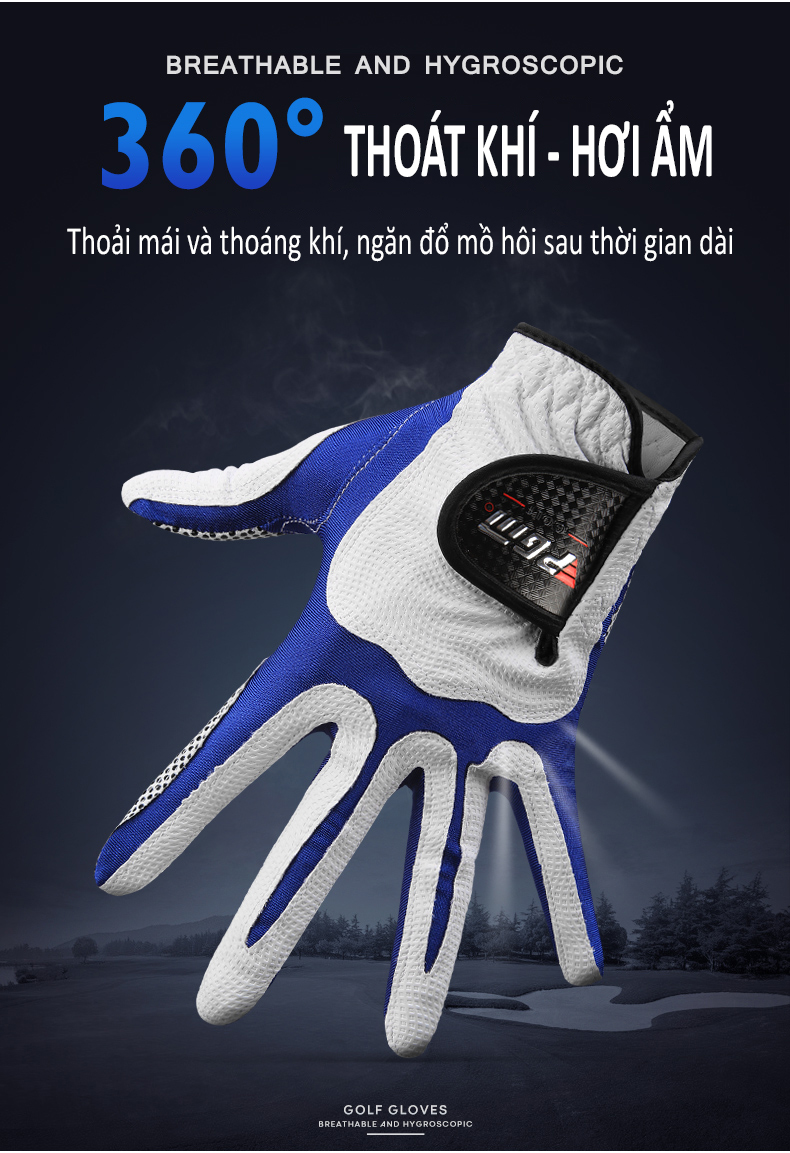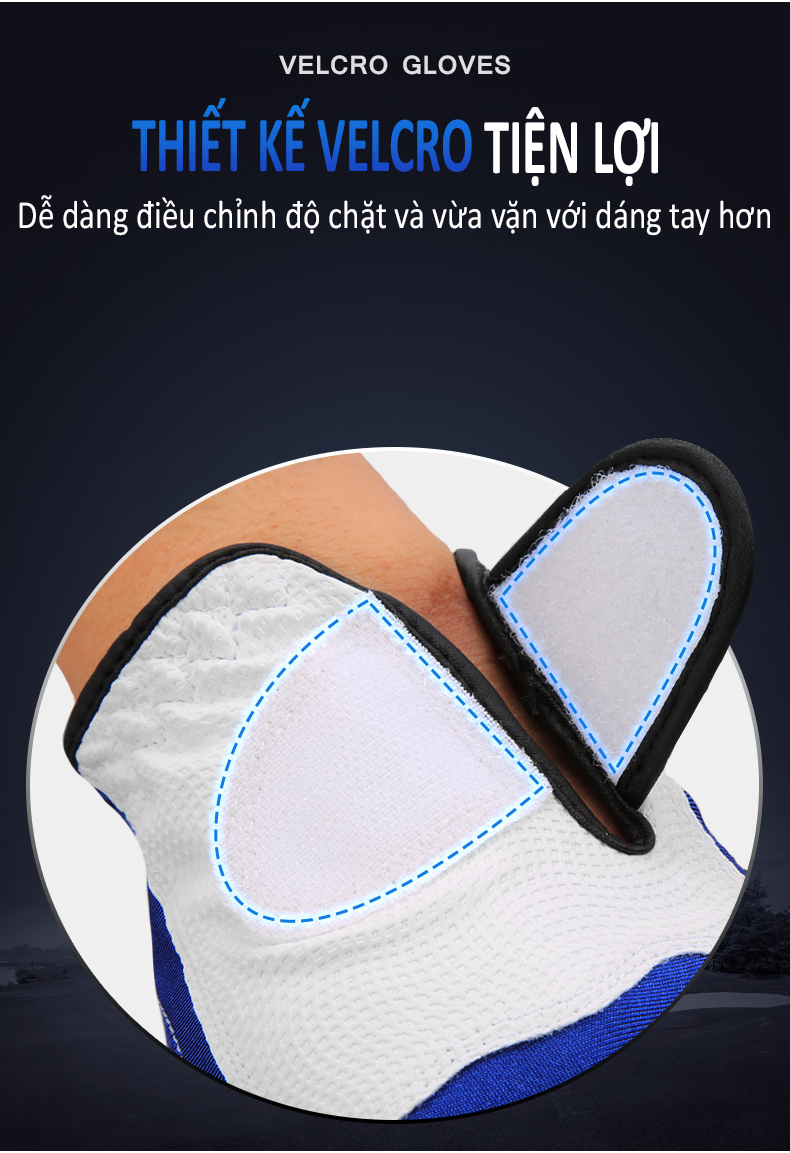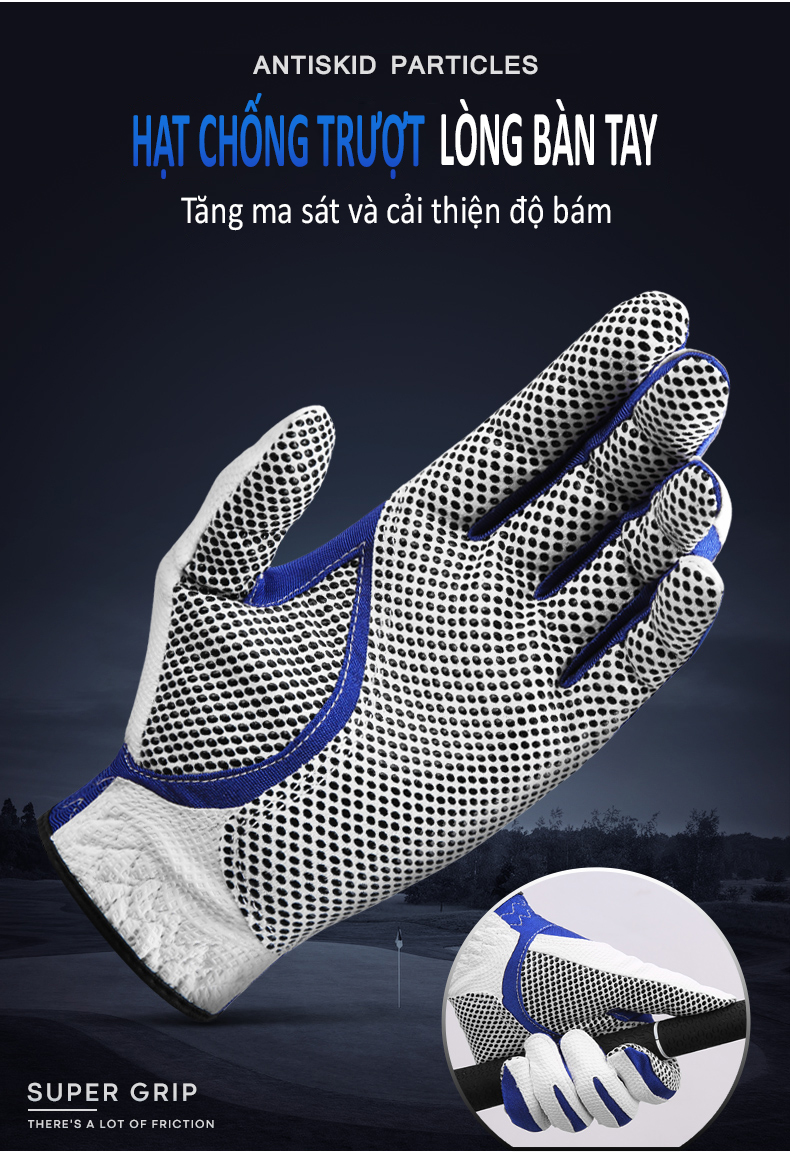 - Lòng bàn tay, ngón tay có các hạt chống trượt, ma sát mạnh. Bảo vệ lòng bàn tay tuyệt đối, cầm gậy chắc chắn giúp các cú đánh, swing ổn định vững chãi hơn.