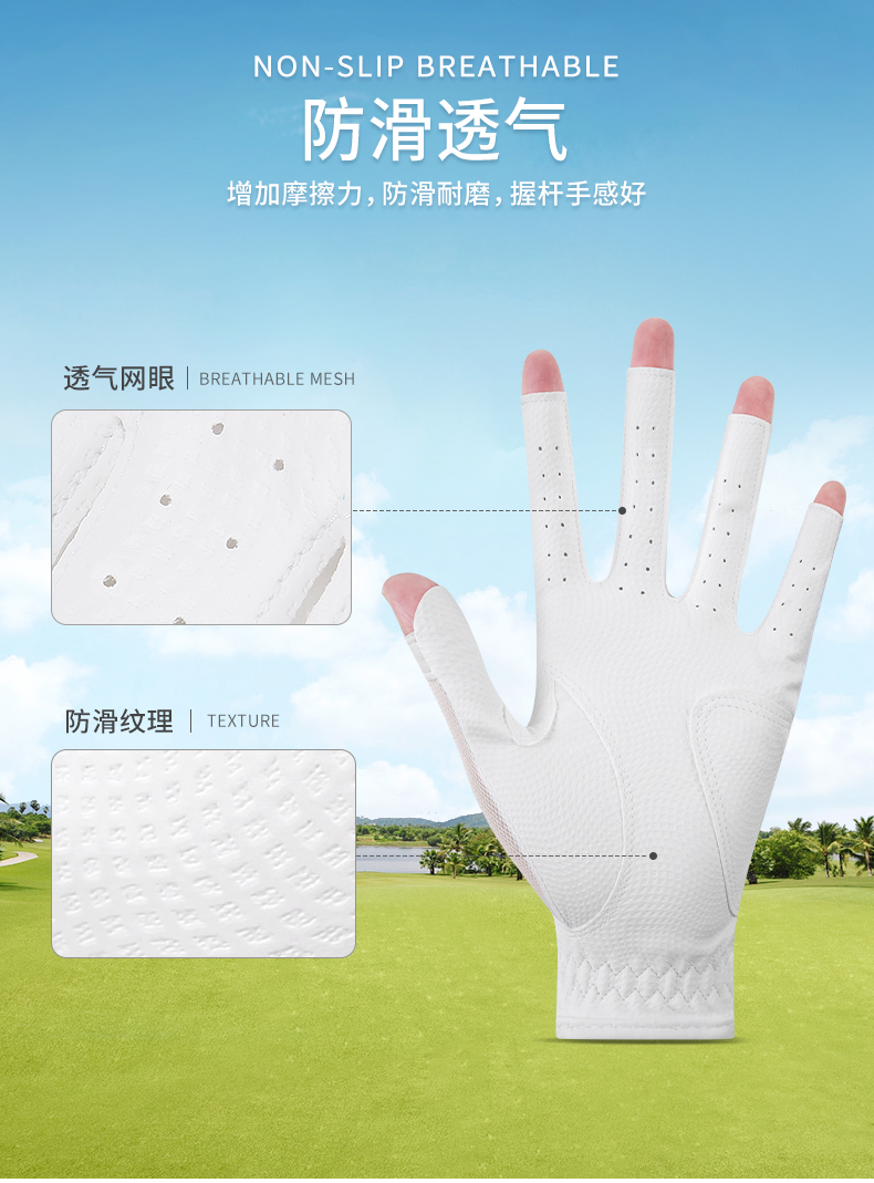 - Găng tay thể thao tiên tiến: Được làm bằng vải Microfiber giúp Golfer cảm thấy mềm mại và thoải mái khi đeo, chống bụi bẩn.