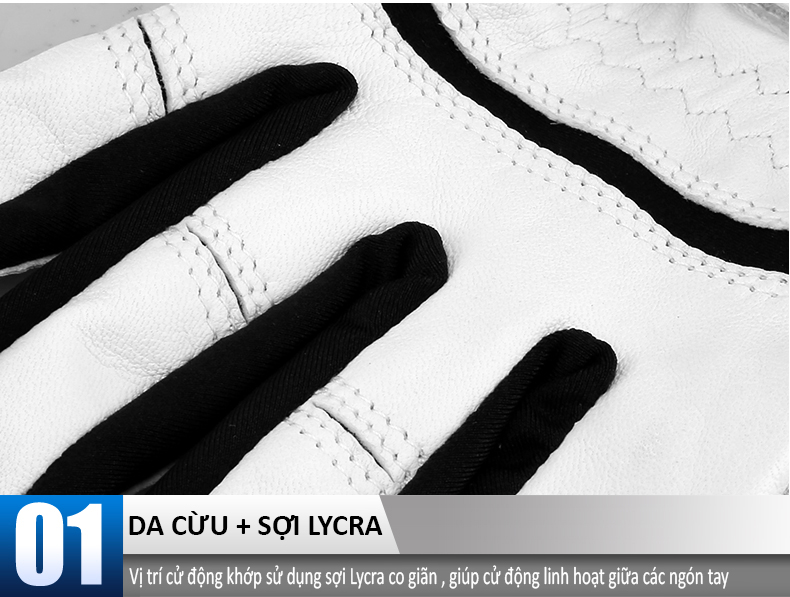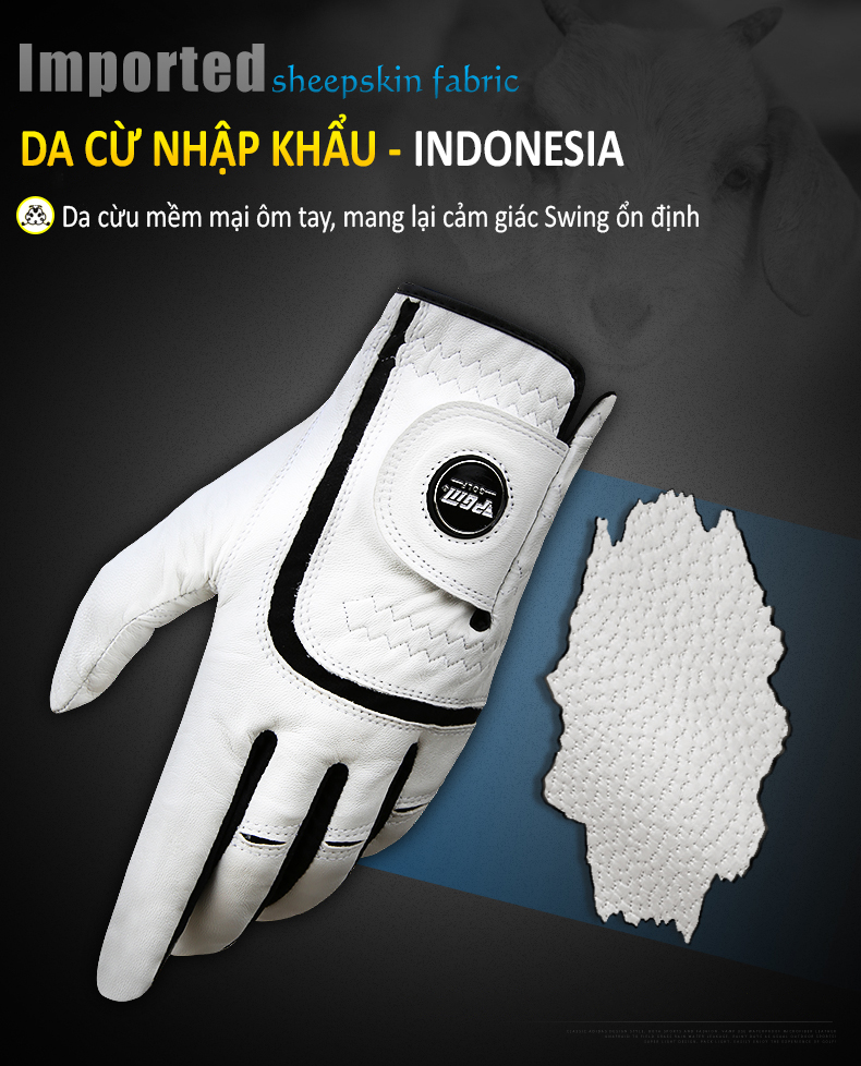 - Găng tay nhập khẩu từ Indonesia, da cừu nhỏ, ưu điểm của găng tay da cừu là mềm và tính thấm cao, lâu không thấm mồ hôi tay;