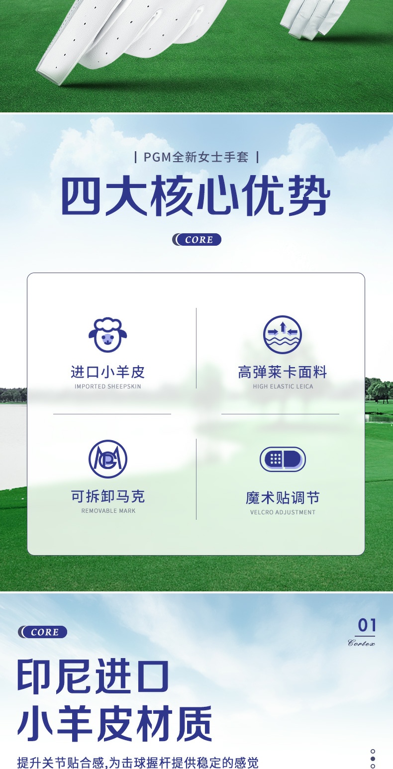 - Găng Tay Hở Ngón Golf Nữ - PGM Women Golf Gloves - ST030