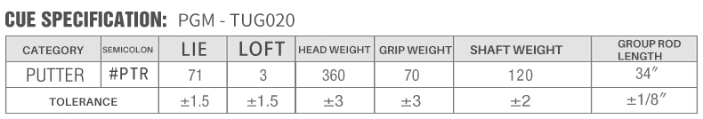 Gậy Putter PGM TUG020 sử dụng các vật liệu cao cấp và thiết kế đa nguyên trên đầu để cải thiện trọng số chu vi cho sự ổn định, kiểm soát và chính xác.