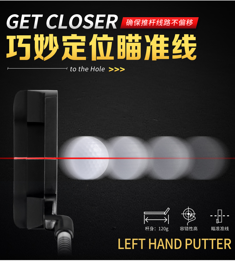 - Thiết kế góc cạnh với thân theo một khối liền mạch mềm mại, chuẩn xác giúp cú đẩy bóng của Golfer trở nên hoàn hảo.