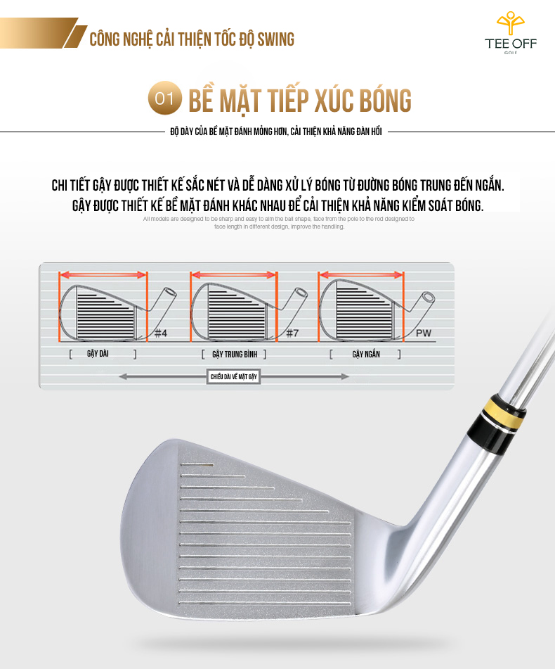 - Bề mặt gậy lớn có thể cải thiện tỷ lệ chính xác của cú đánh, cũng có thể đánh được khoảng cách xa hơn.