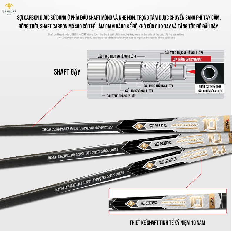 - Công nghệ chế tạo và sơn phủ cao cấp trên cán gậy Graphite.