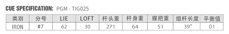 - Tên sản phẩm: Gậy Sắt 7 - PGM Golf #7 Iron G300 - TIG025