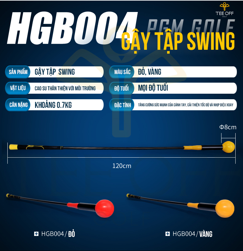 - Gậy tập Swing HGB004 là mẫu gậy rất thích hợp cho việc tập các cú Swing trong phạm vi không gian hạn chế mà không cần tới việc sử dụng bóng Golf thật.