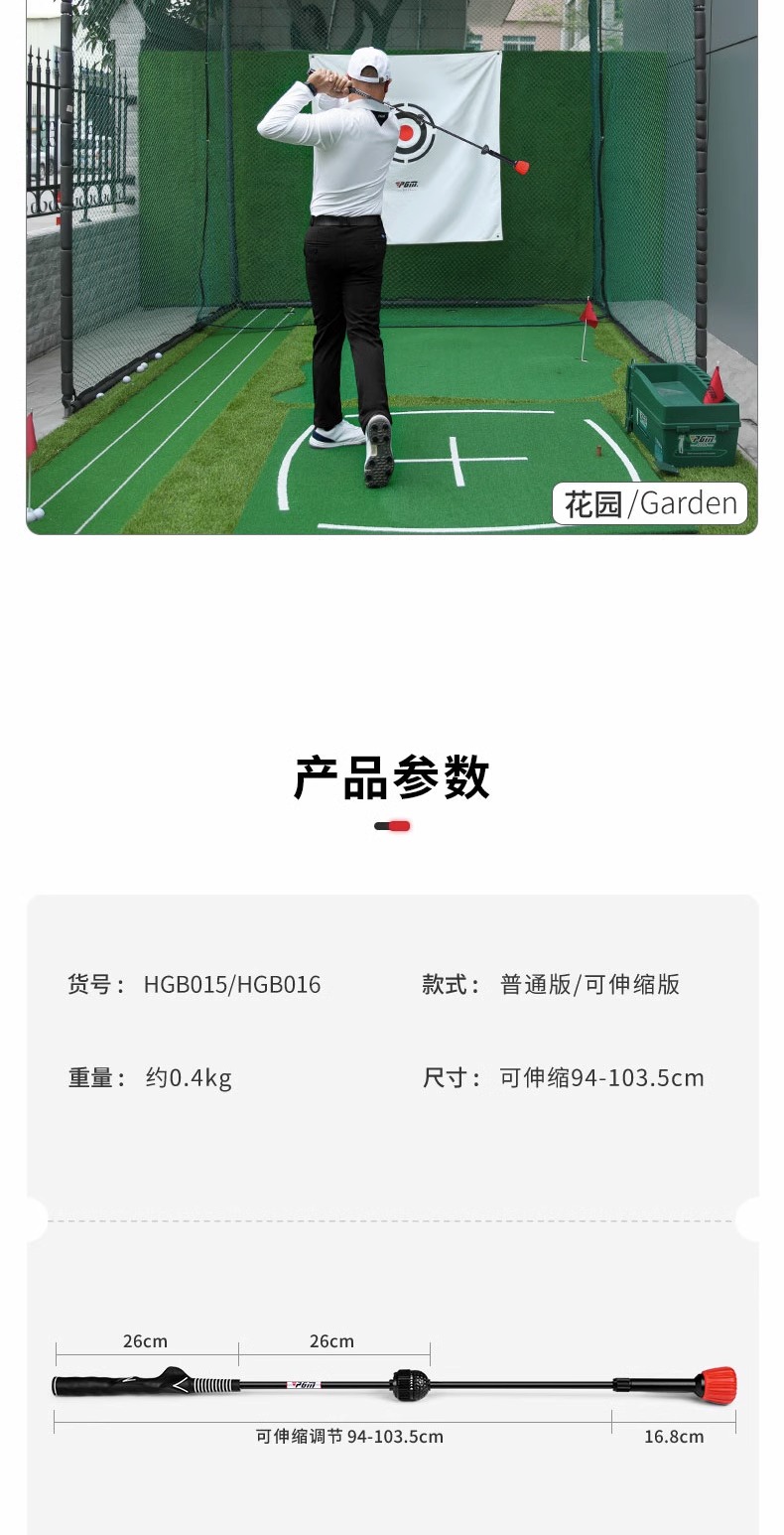 - Gậy tập Swing HGB016 là dạng gậy tập phổ biến cho người mới chơi Golf, mang một số tác dụng cần thiết như: giúp người chơi có bài khởi động hữu ích, giúp người chơi có cách nắm gậy chuẩn xác nhất, ngoài ra còn là công cụ tập nhằm gia tăng lực đánh của tay.