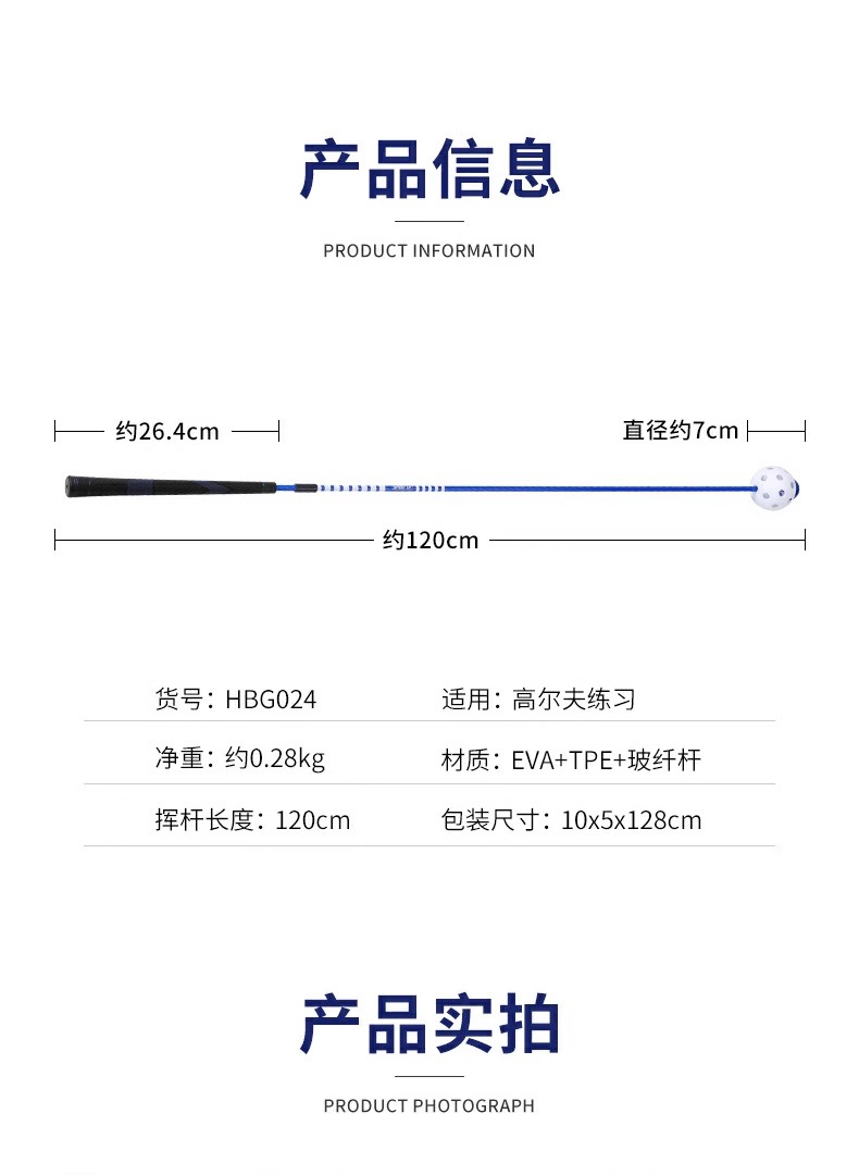 - Tổng độ dài: 120cm - Tương đương cây Driver giúp Golfer có thể làm quen với cây gậy của mình ngay sau khi tập.