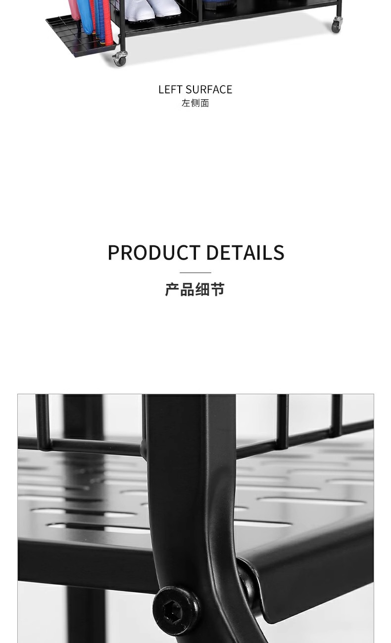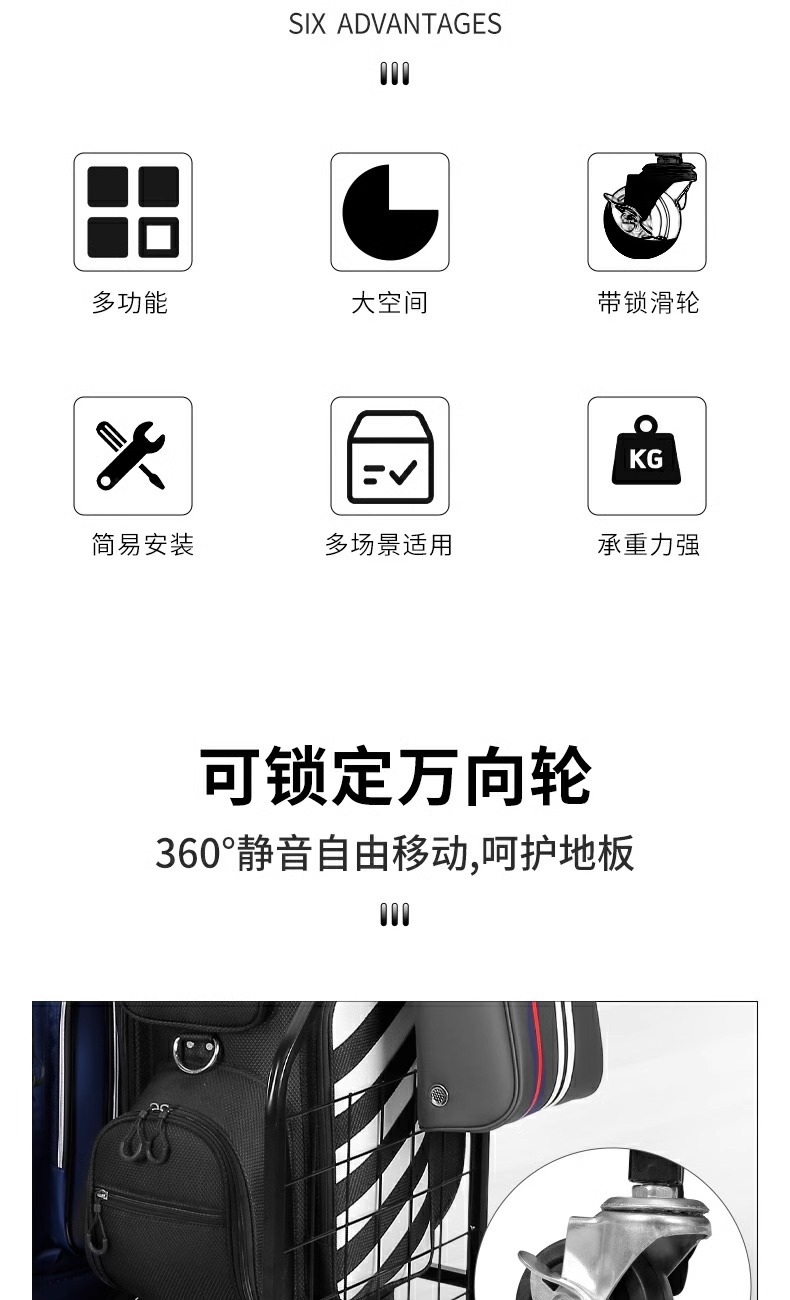 - Tiện ích đa năng: có thanh gắn để phụ kiện như ô dù, móc đa năng để treo các loại túi. Đặc biệt các ngăn có thể tháo rời, giúp người dùng có thể tự lắp theo sở thích