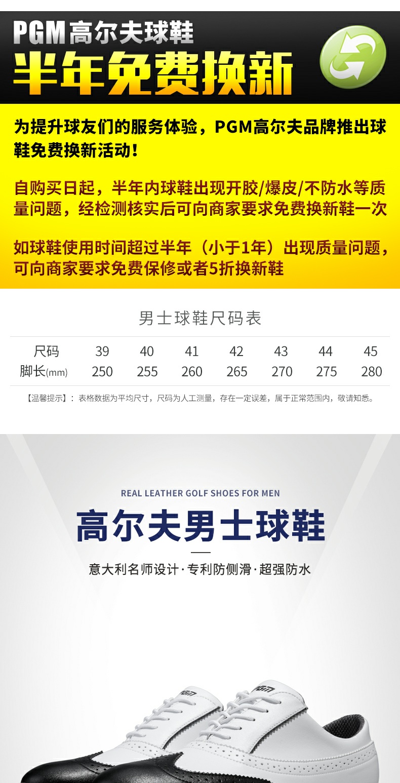 - Giày Golf Nam Chống Nước Chống Trơn Trượt - PGM Men's Waterproof Golf Shoes - XZ256