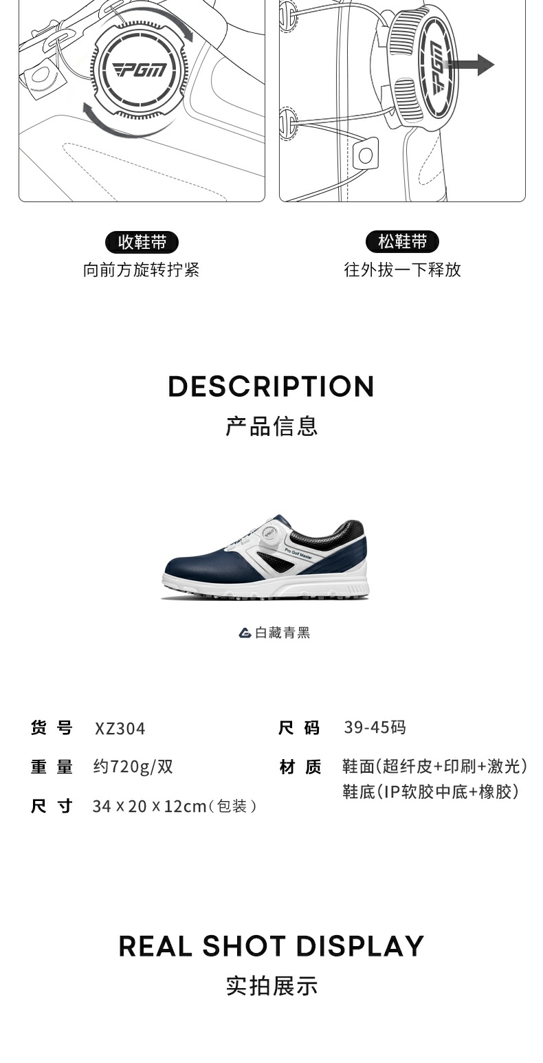- Giày Golf Nam Chống Nước Chống Trơn Trượt - PGM Men's Waterproof Golf Shoes - XZ304