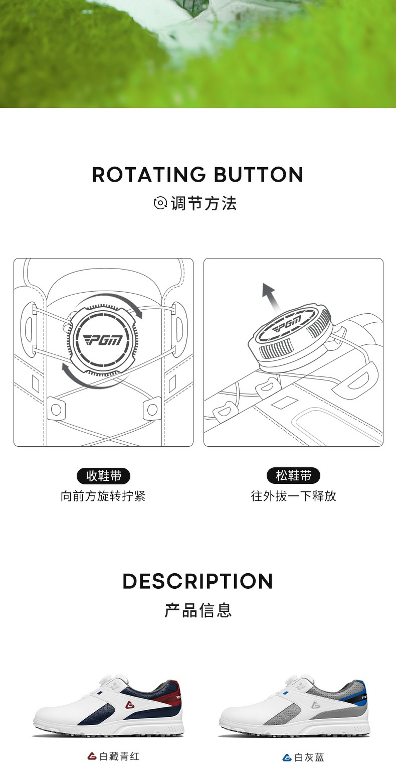 - Giày Golf Nam Chống Nước Chống Trơn Trượt Thiết Kế Núm Vặn Dây Giày Tiện Lợi - PGM Men's Waterproof Golf Shoes - XZ291