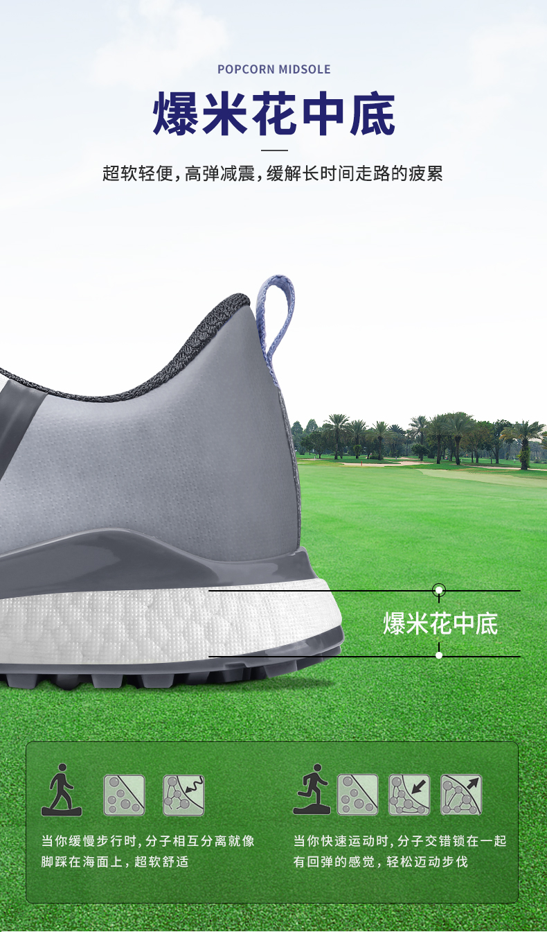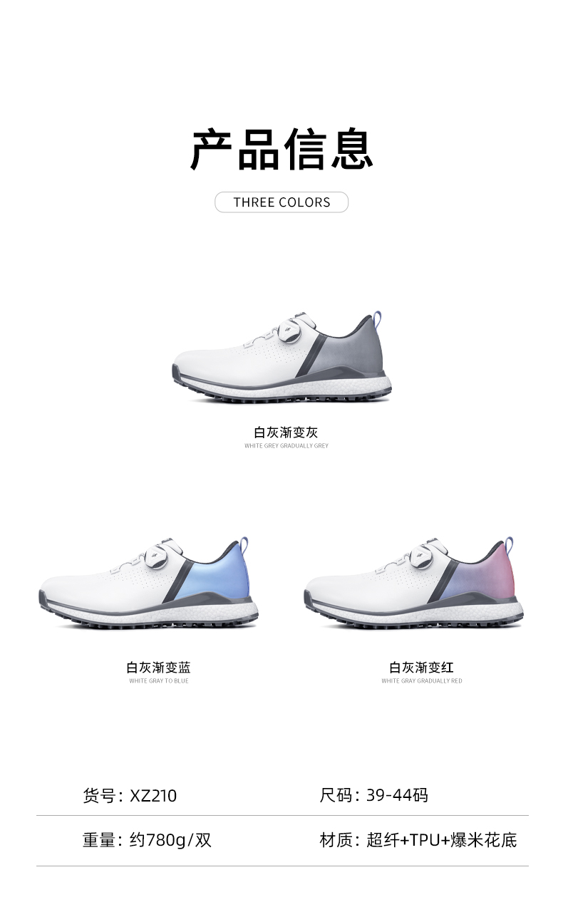 Giày XZ210 là mẫu giày mới của năm 2022 với chất liệu đế bằng xốp popcorn mới lạ, đinh bằng nhựa TPU với công nghệ chống trượt đã được cấp bằng sáng chế, giúp golfer đứng vững, swing tốt hơn.