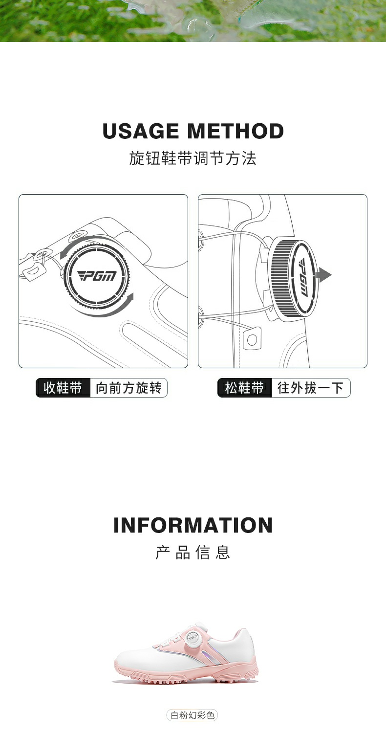 - Giày Golf Nữ Chống Nước, Chống Trượt, Có Núm Điều Chỉnh Kích Thước Tiện Lợi - PGM Women's Golf Shoes - XZ297