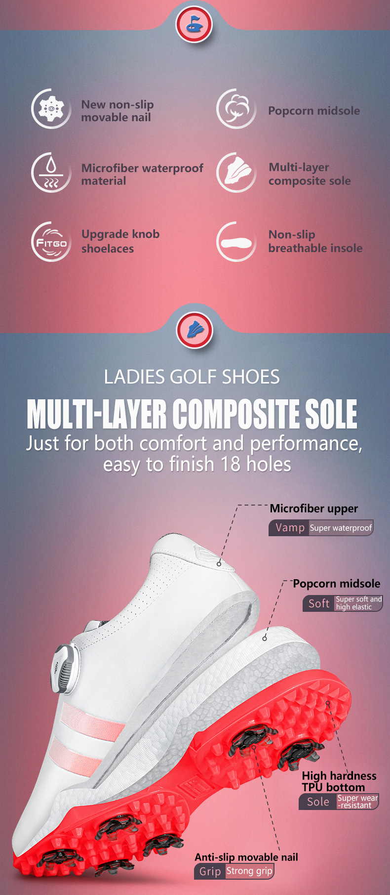 - Thương hiệu mới FITGO dây giày hệ thống, đóng mở dây giày trong hai giây, nhanh chóng
