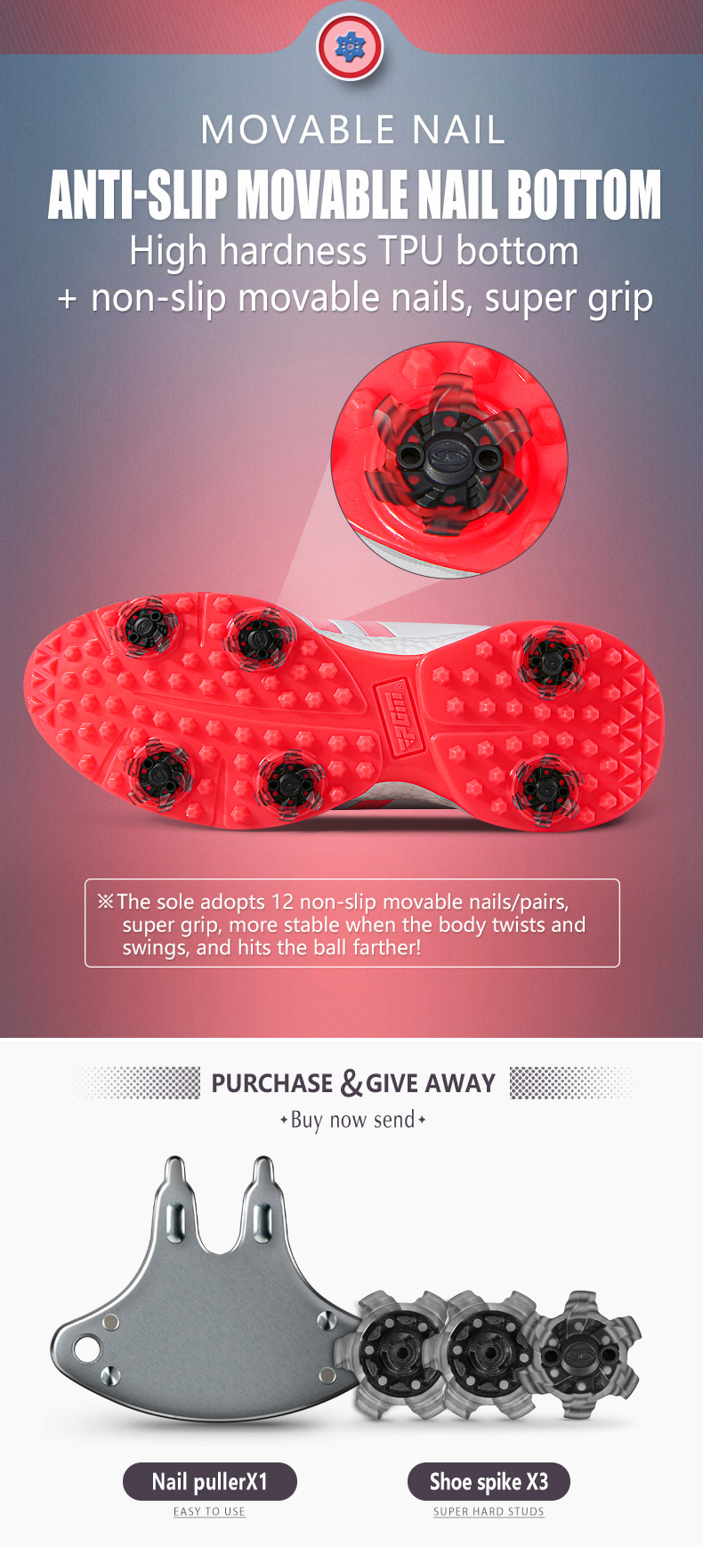 XZ171 là mẫu giày nằm trong series đế Popcorn của PGM. Sản phẩm được tích hợp đế nhiều lớp, đinh giày có thể tháo được chống trượt cao cấp, phần núm vặn được cải tiến.