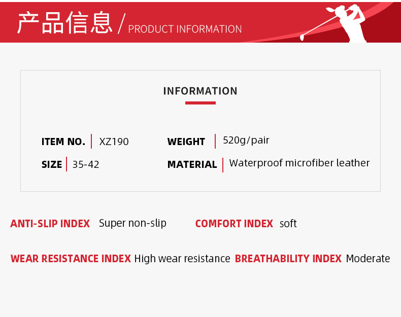 - Giày chống trượt được cấp bằng sáng chế bởi đế đinh siêu bám, trụ lực chắc chắn giúp cú đánh ổn định hơn.
