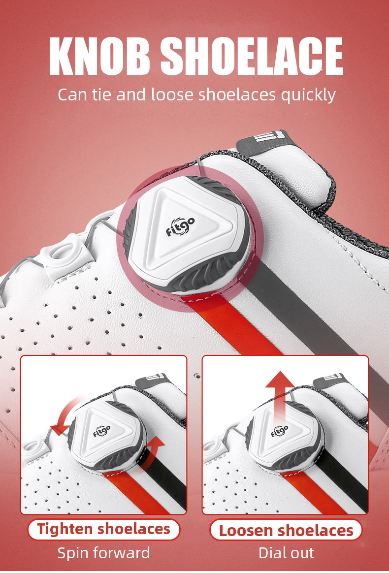 - Hệ thống dây giày xoay FITGO mới, buộc dây và cởi dây giày nhanh chóng chỉ bằng cách bật nút và xoay núm. Xoay theo chiều kim đồng hồ để nới thắt chặt dây và xoay ngược chiều kim đồng hồ để nới lỏng dây.