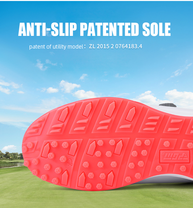 - Giày chống trượt được cấp bằng sáng chế bởi đế đinh siêu bám, trụ lực chắc chắn giúp cú đánh ổn định hơn.