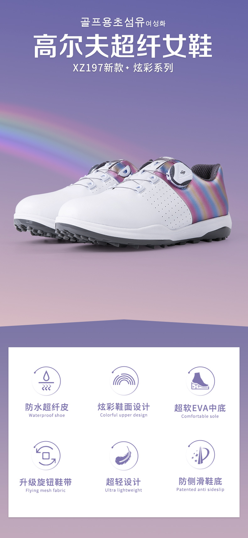 Sản phẩm giày golf XZ197 với thiết kế siêu nhẹ, chống thấm nước và mài mòn sẽ đem đến cho quý khách một trải nghiệm khác biệt. Đế giày có lỗ thoáng khí giúp golfer thoải mái hơn suốt ngày dài lên sân.