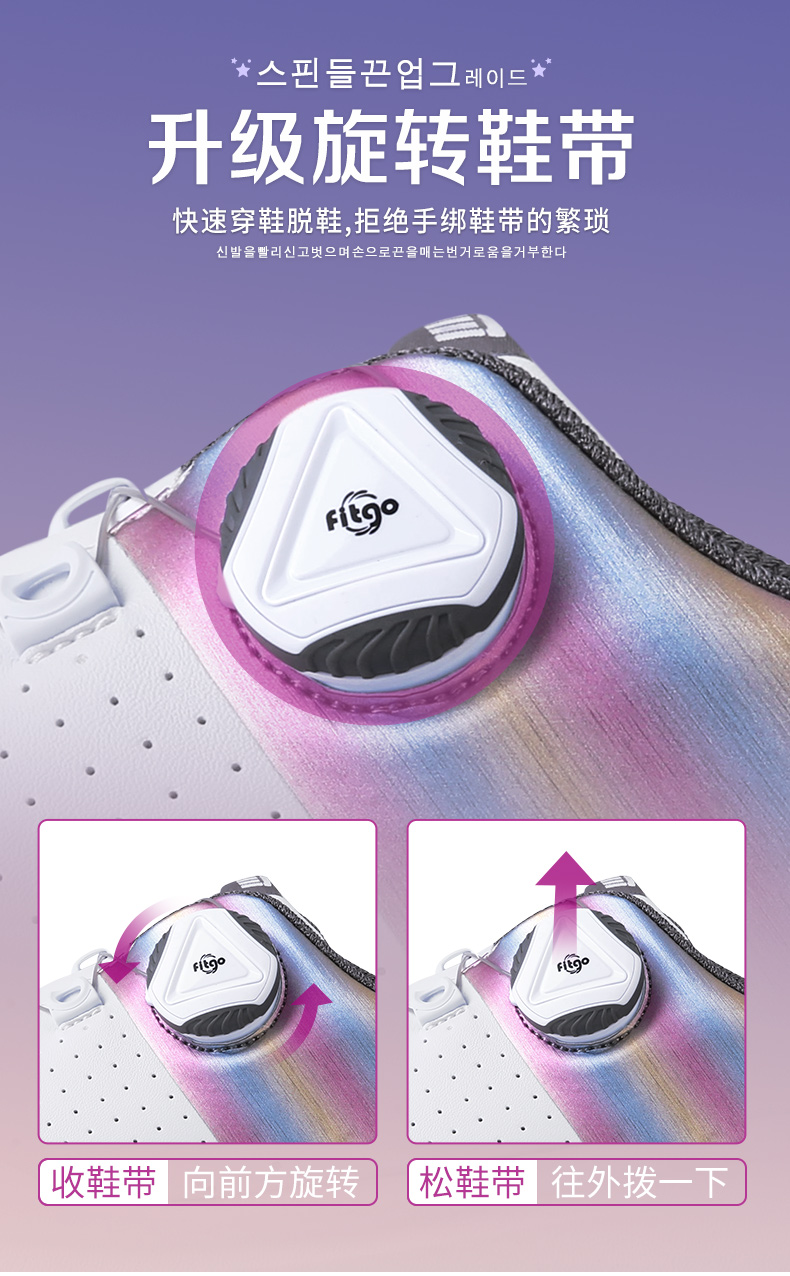 - Thiết kế dây vặn thông minh giúp golfer đóng mở dây giày nhanh chóng, chỉ trong 2 giây.