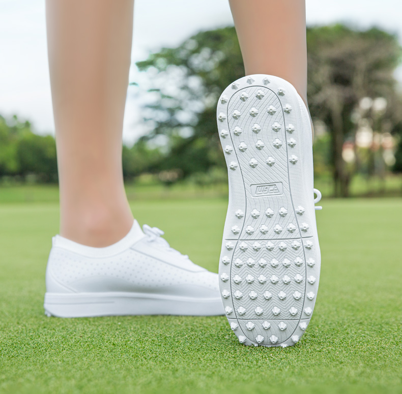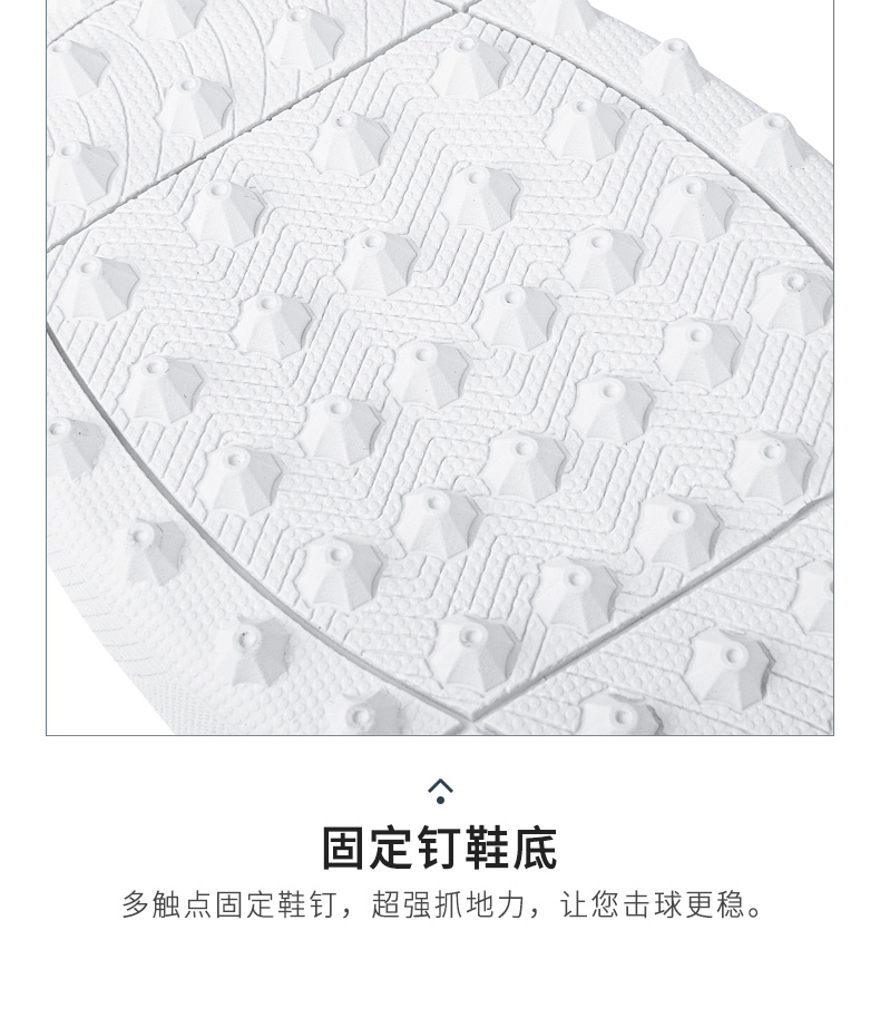 - Giày chống trượt được cấp bằng sáng chế bởi đế đinh siêu bám, trụ lực chắc chắn giúp cú đánh ổn định hơn.