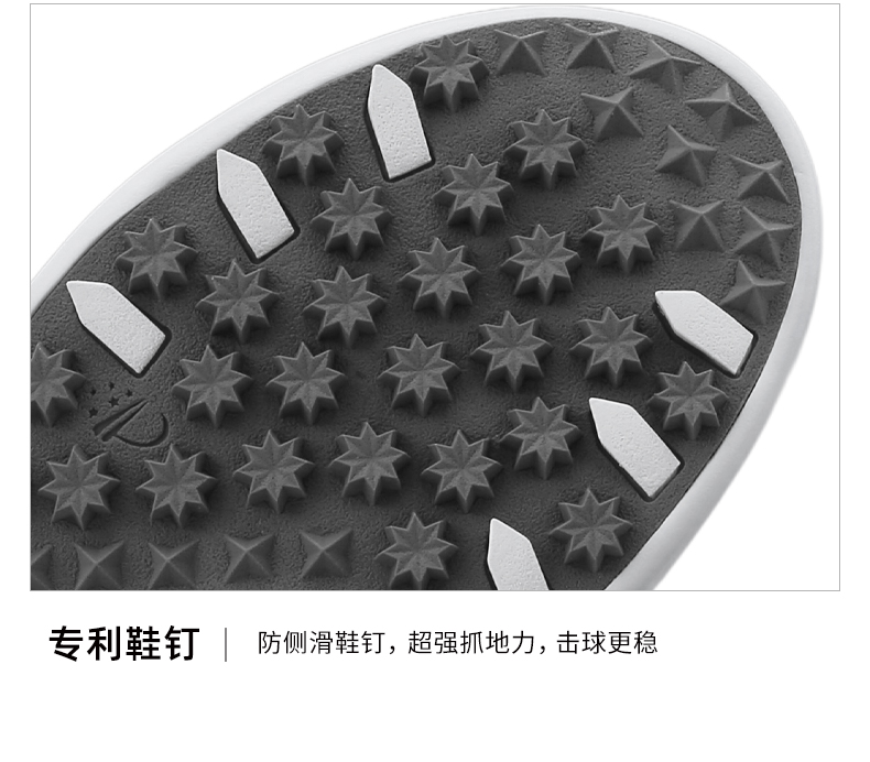 - Giày chống trượt được cấp bằng sáng chế bởi đế đinh siêu bám, trụ lực chắc chắn giúp cú đánh ổn định hơn.