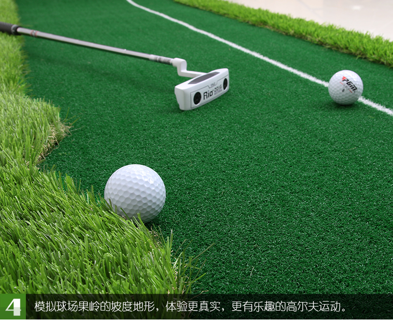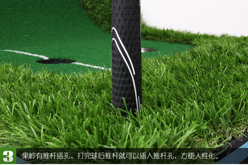- Thiết kế đặc biệt: Thảm có độ dốc, khu vực bẫy cát, hồ nước để mô phỏng địa thế như ở trên sân Golf ở nhiều góc độ khác nhau.
