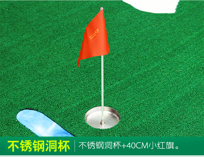 - Bộ sản phẩm đầy đủ: 1 thảm cấu tạo 2 lớp (Đế Eva và lớp cỏ), 5 hố Golf bằng Inox, 5 cờ mục tiêu, 1 bàn chải thảm cỏ.