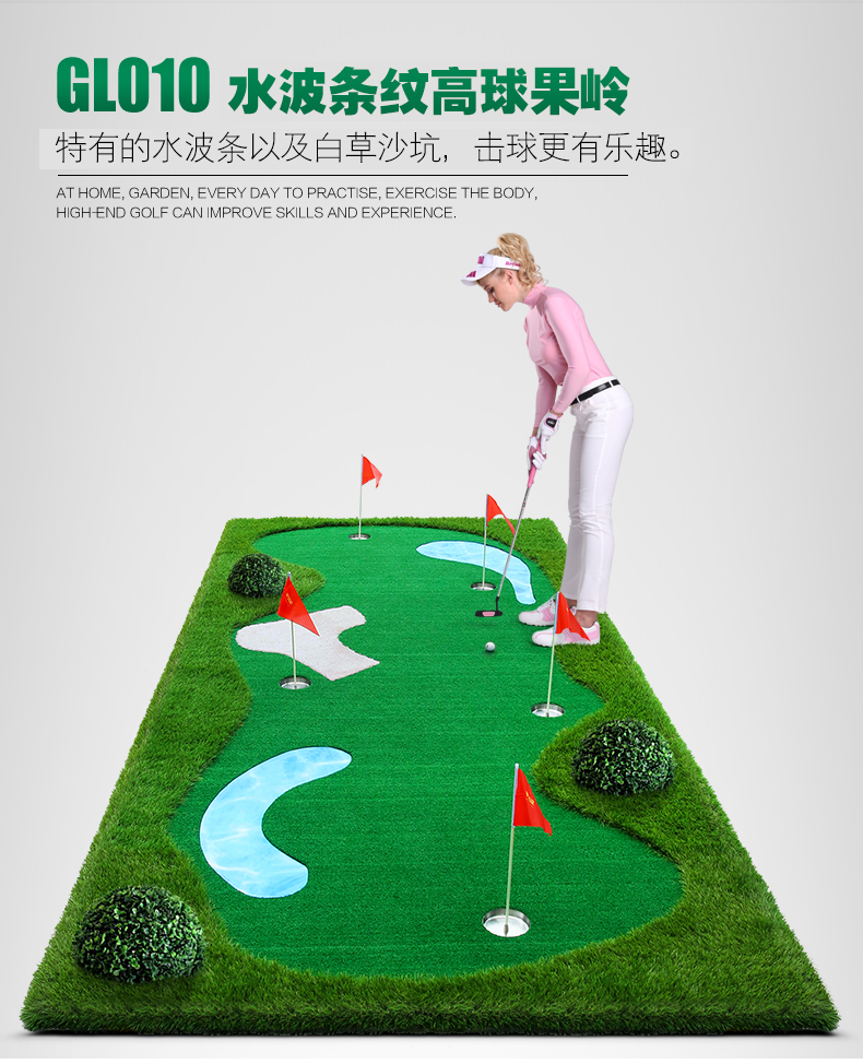 - Thiết kế đặc biệt: Thảm có độ dốc, khu vực bẫy cát, hồ nước để mô phỏng địa thế như ở trên sân Golf ở nhiều góc độ khác nhau.